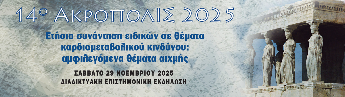 14° ΑΚΡΟΠΟΛΙΣ 2025 – Ετήσια Συνάντηση Ειδικών σε θέματα Καρδιομεταβολικού Κινδύνου: Αμφιλεγόμενα Θέματα Αιχμή